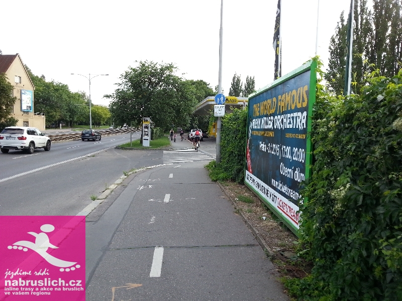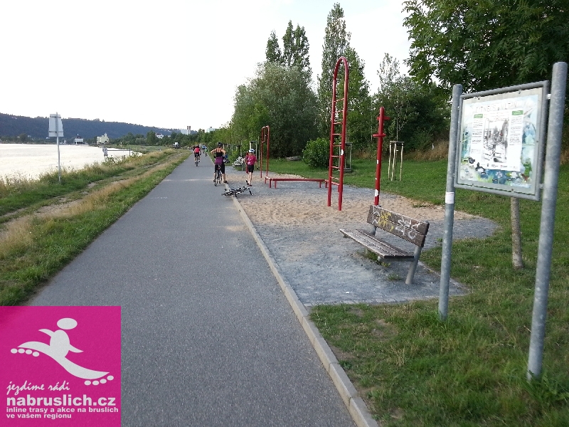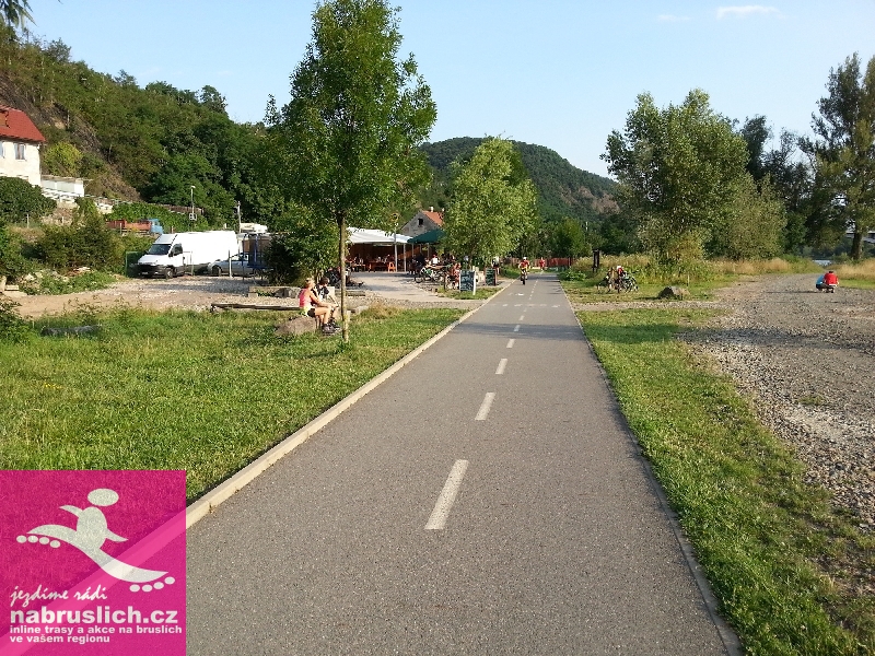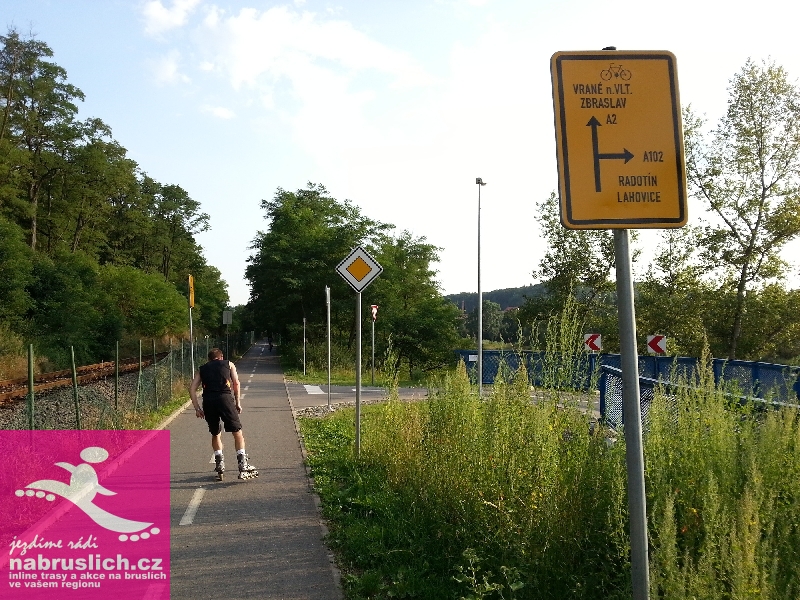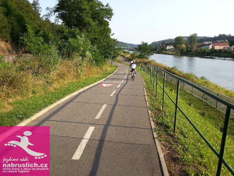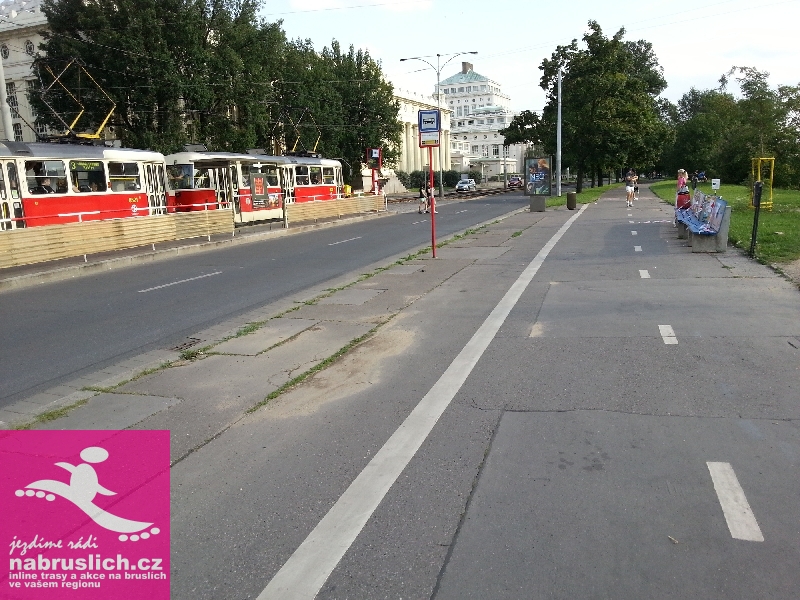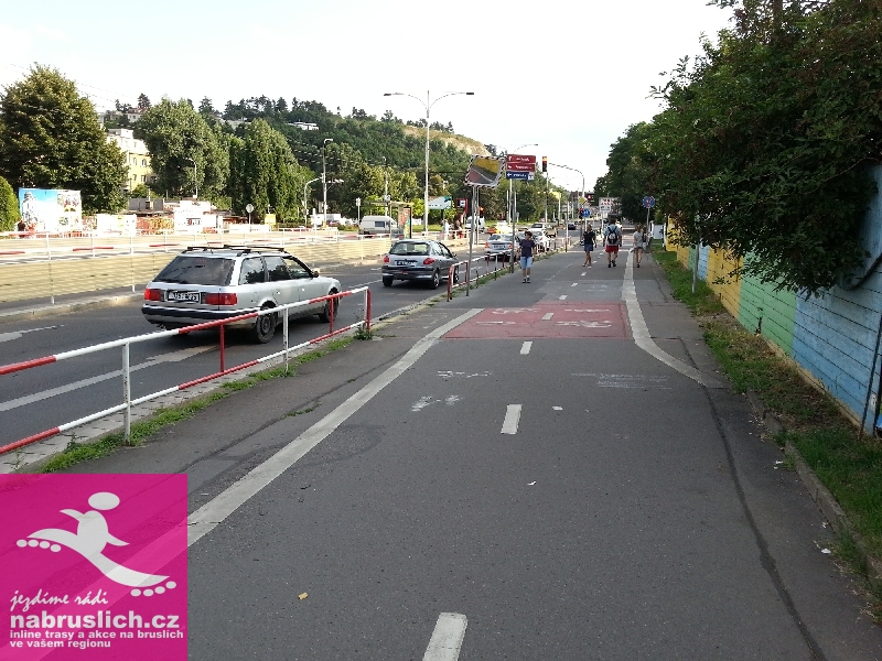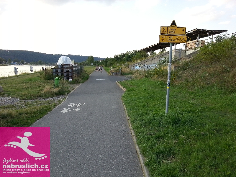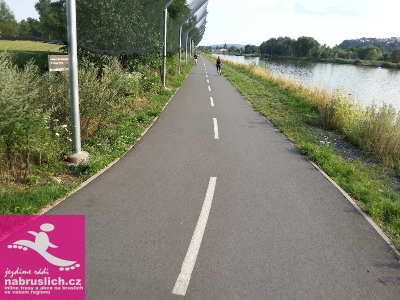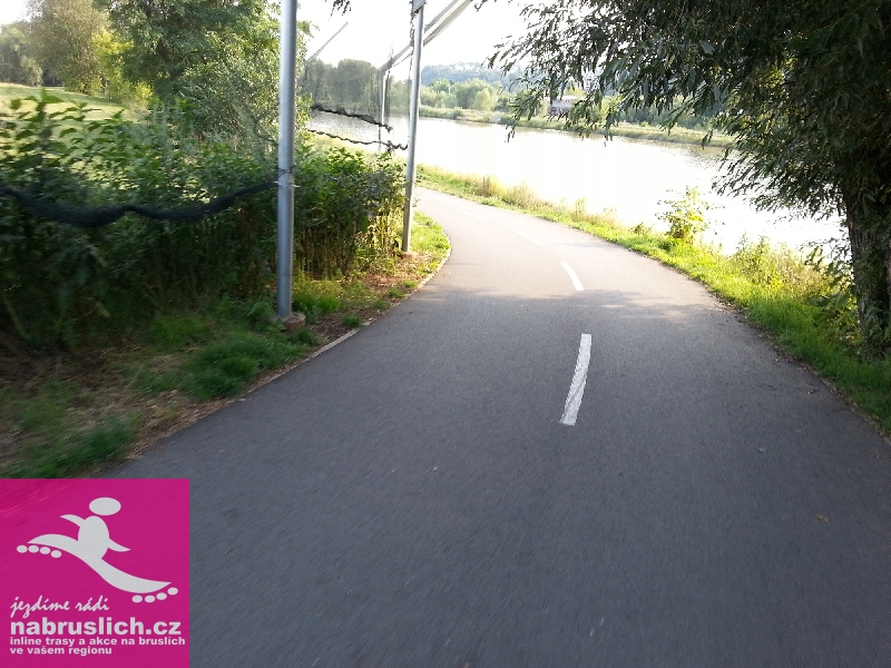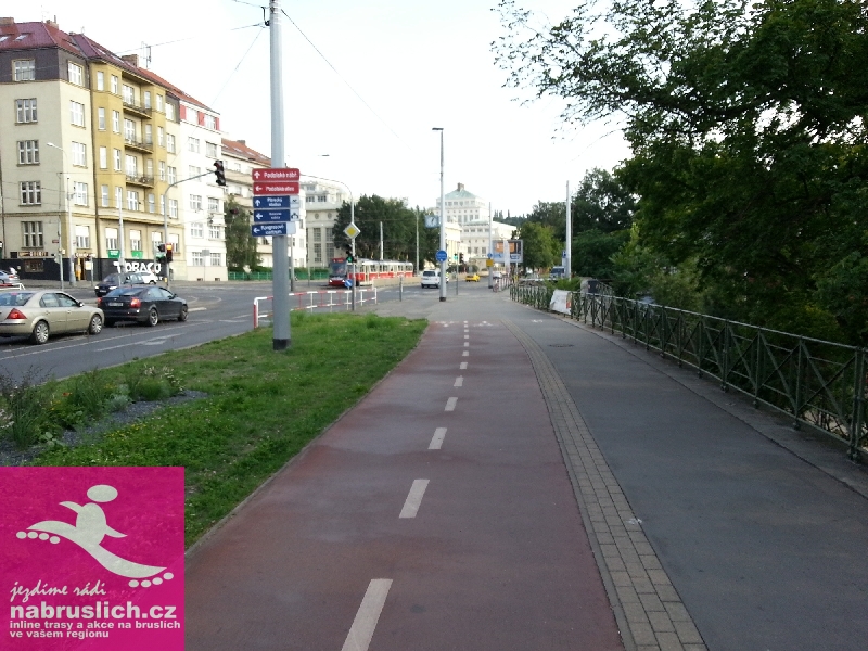Trasa začínající pod mostem u Vyšehradu, trasa je příjemná, vede podél silnice, míjí Podolskou porodnici, Podolskou vodárnu, Podolský bazén, Žluté lázně, povrh je dobrý, sem tam nějaká oprava a nebo lehké zvlnění, je tam 1 přejezd před semafory a pak pár přejezdů před přechod, auta tam moc nejezdí, a také přejezd u benzínky Agip. Ideální začátek je buď Podolská vodárna TRAM, jsou zde lavičky na obutí, případně Dvorce, jen ale 1 lavička, pak i Přístaviště. U přístaviště jsou 2 možné trasy - jeden sešup celkem rychlý a je to tam zvlněné, jen pro zkušenější, a nebo pak přes zastávku TRAM Přístaviště. Pak už se zase jede dobře, jednou mírně více do kopečka kousek za Barrandovským mostem. Poté se jede kus po silnici, drncající asfatl, jsou tam další místa k parkování a začátku bruslení. Pokračuje se kolem golfového hřiště, a podél Vltavy od Braníku do Modřan. V Modřanech se jede kolem TRAM Nádraží Modřany, Obchodní náměstí, vlaková stanice Modřany. Pokračuje se pak na Zbraslav sále kolem Vltavy, přes Freestlye Park, kde se dá odpočinou, zasportovat i jinak. Dají se potkat dračí lodě Praha Chuchel. U nádraží Modřany je přívoz, lze přejet na druhou stranu na trasu Lihovar - Modřany i zde na webu popsaná - Podél strakonické (4.6). Opravdu pozor na TRHLINY u podjezdu Pražského okruhu, jsou dost široké a zalité jen okrajově asfaltem a dá se v nich hezky nechat brusle :-( Místo je označeno nápisem na trase. Trasa vede pod mostem a kolem vlakové traťě. Ve Zbraslavi je ke konci 2x občerstvení, ale dá se popojet ještě kousek po běžné silnici mezi chatkami a skončit kousek za mostem před Vlatavu ve Zbraslavi. Podél trasy je plno občerstvení, laviček, prolízaček, dá se lehce dostat na vlak, TRAM, BUS, takže v případě horšího počasí je jak rychle zmizet. Místy je trasa hodně úzká, jezdí tam dost cyklistů, v pátek v podvečer lidí tak akorát, jinak prý dost lidí vždy. Místy je super asfalt, hladký, místy drsný, drncavý, ale když se přejede, je to pak OK.