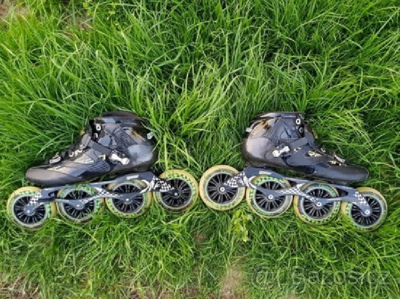 Na bruslích jezdila přítelkyně (velikost nohy cca 44), jsou v podstatě zánovní, lehce odřené z vnitřní strany a mírně sjetá a ošoupaná kolečka. O brusle/kolečka bylo pečováno, pravidelně otáčena a přehazována, mazána...