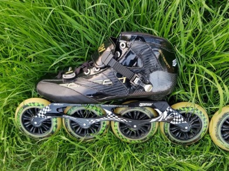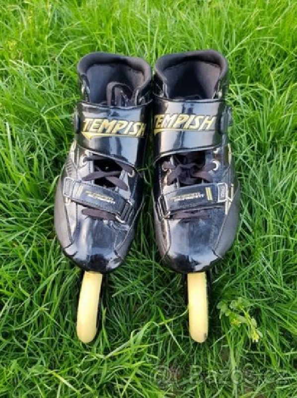Prodám speed brusle Tempish Scream velikost 45. Brusle jsou koncipované jako závodní, velká 110 mm kolečka (tvrdost 90A) umožňují bruslit velmi rychle a zároveň dobře zvládají nerovnosti, pevná kvalitní karbonová konstrukce boty drží dobře nohu, i když je bota nízká. Odlehčený hliníkový podvozek je možné nastavit podle potřeb konkrétního bruslaře a upravit tak jízdní vlastnosti bruslí. Šikovná přezka umožňuje botu na noze dobře dotáhnout.