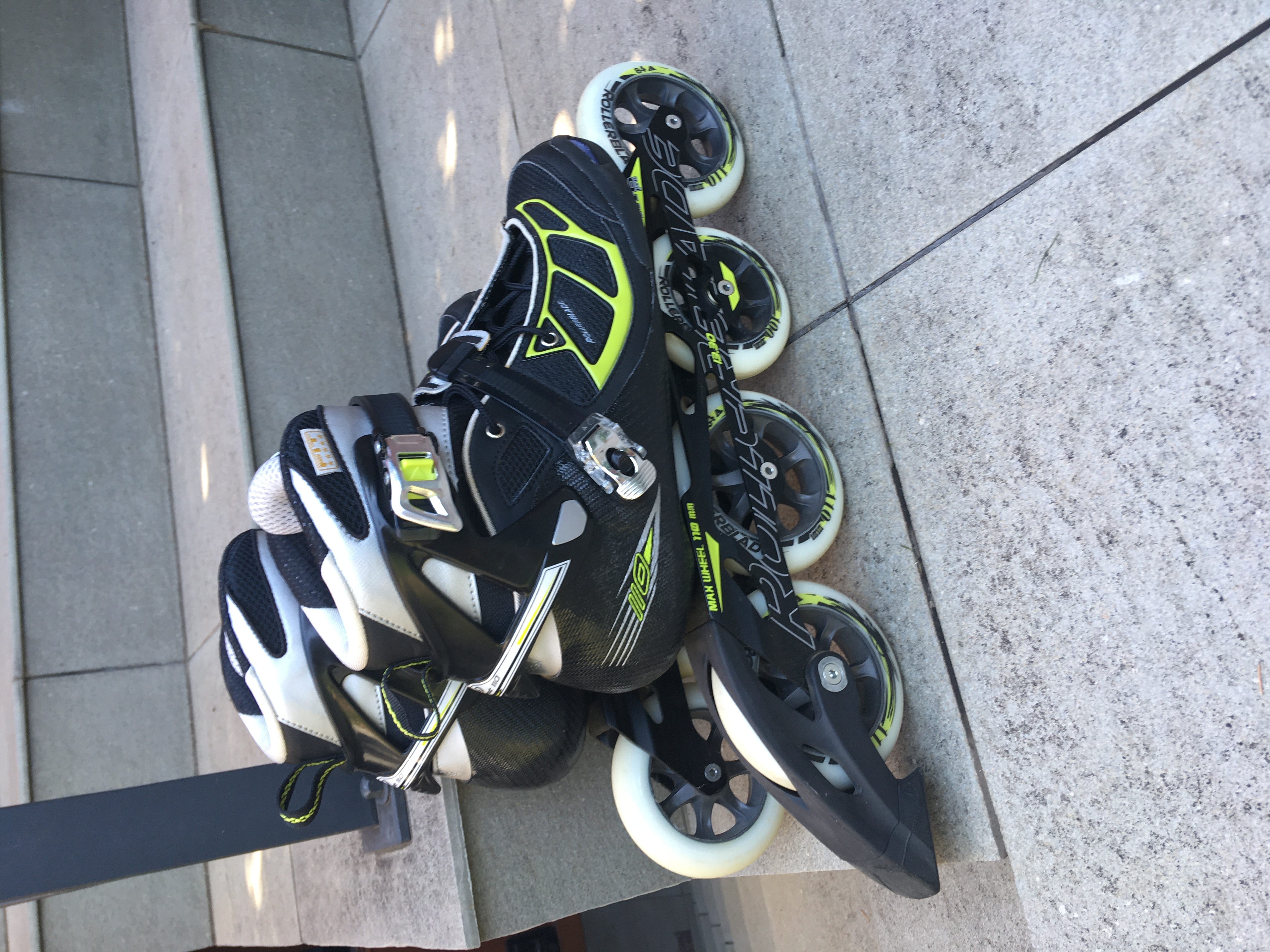 Prodám nové (jednou použité) kolečkové brusle zn. Roller Blade. Velikost 44,5 (9,5). Noha 8-9,5. Průměr koleček 110 mm. Nevhodný dar. Původní cena 11.000,-Kč. Prodám za 4.999,-Kč