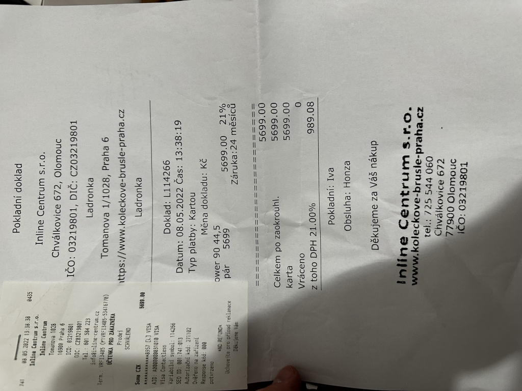 Prodám tyto brusle, jsou téměř nové, koupil jsme si je kvůli dceři a ta přestala jezdit. Vytáhnul jsme je celkem asi 3x. V záruce, pořizovací cena 5699. Možno prodat i s chrániči od K2.